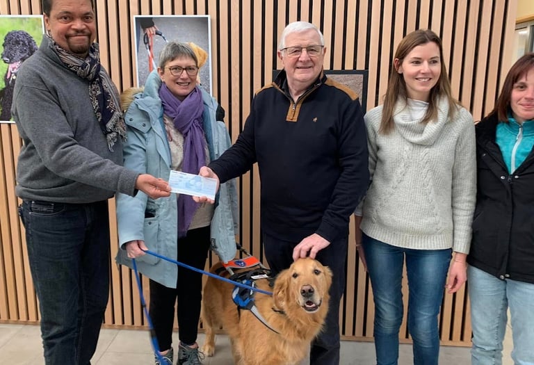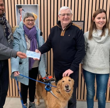 Un don de 10 000 € a été fait à l'École des Chiens Guides de l'Est pour financer un chien guide destiné à une personne devenue malvoyante suite à un traitement contre le cancer.